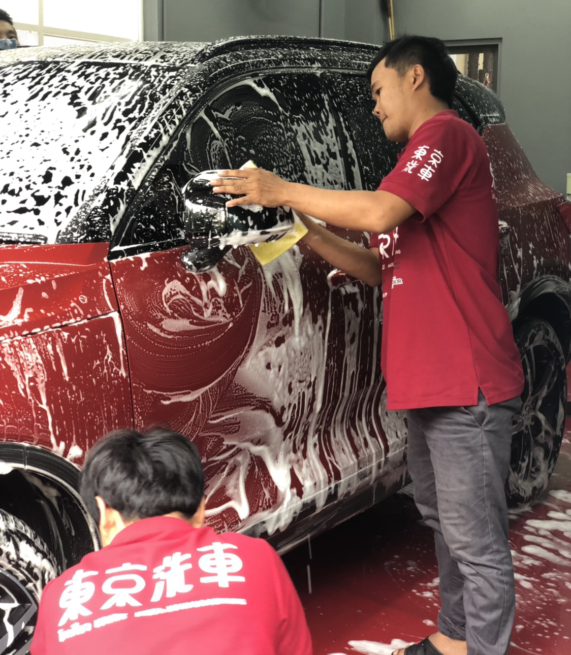 それに比べ、東京洗車は完全手洗い洗車!プロの技・日本の技術で、複数人のスタッフが一台一台の車に合わせ、優しく洗車するので、細かいところまでしっかりと丁寧に洗うことができます。